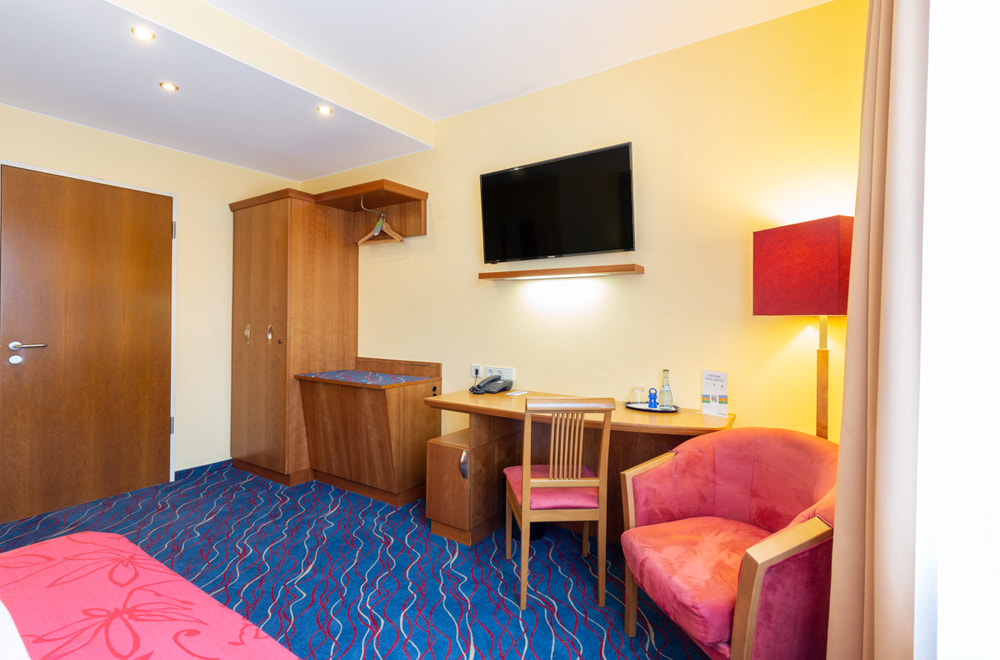 Die Zimmer, ab 19 qm Größe, sind mit einem franz. Bett in der Größe von 160x200 in Komforthöhe ausgestattet. Der Schreibtisch, Flat-TV mit Internetzugang, Fön, W-Lan, Telefon und Digitaler Service vollenden den Komfort dieser Zimmerkategorie. Eine Minibar ist teilweise vorhanden oder auf Wunsch bestellbar.